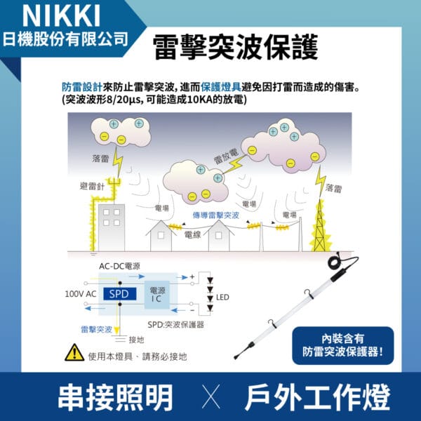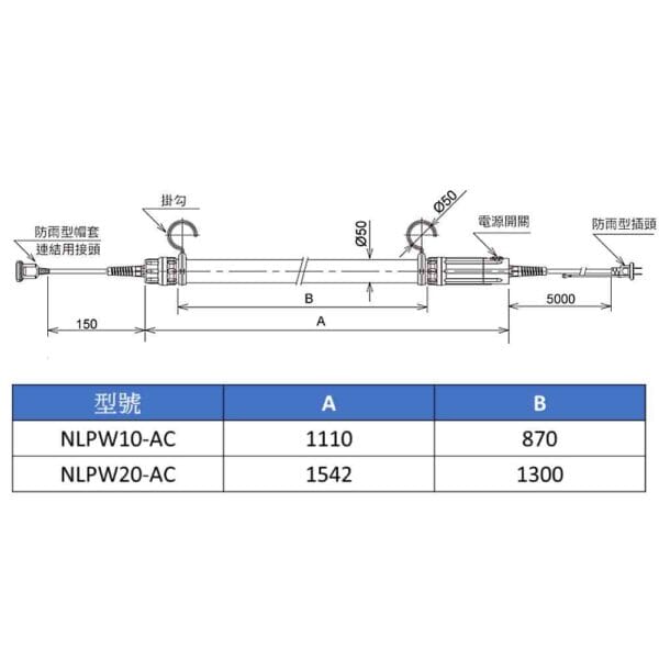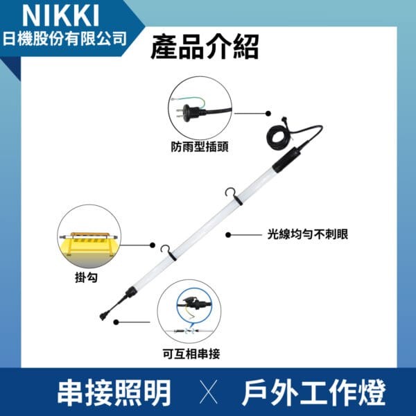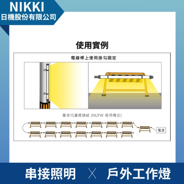 - NLPW ⾧型工作LED燈,適用於室內或室外施工現場或大型光源需求場地