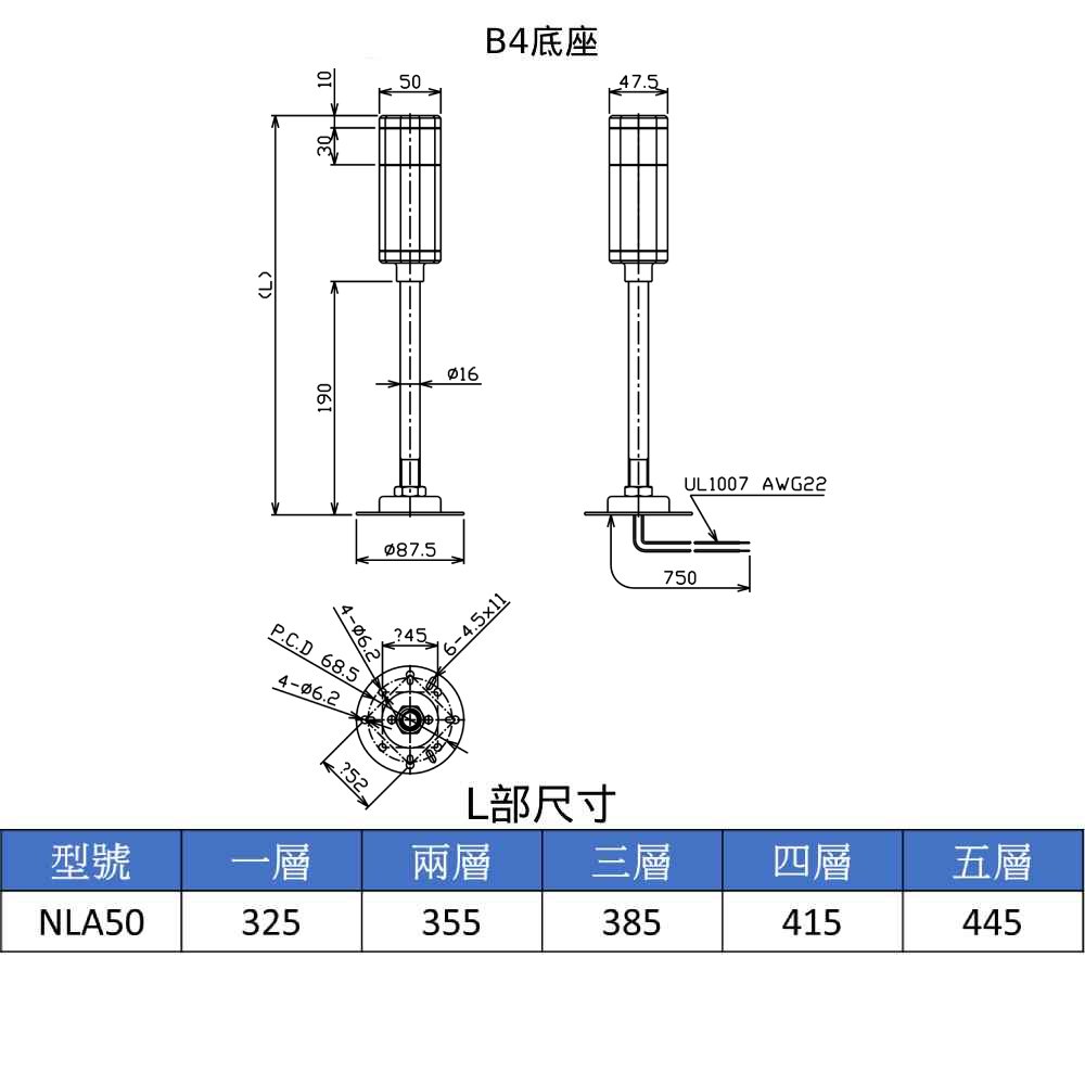 警示燈 NLA50 晶鑽型系列 DC/AC電源 警報燈 塔燈 多層警示燈